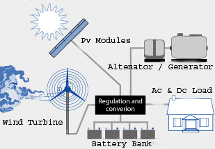 Depending on the source, there will be charge regulation to keep the batteries charged and healthy. Another function of these control units is the load ie. how far you may safely discharge the battery.