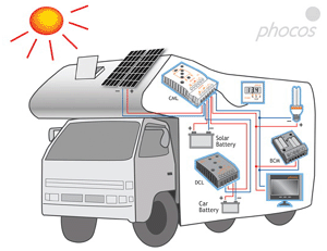 In Cars, inverters that operate from your lighter socket are ideal for Laptops and other devices on the go. For Boats, RV's and Camping we recommend Solar panels and 12V DC devices, they do a great job of keeping you in comfort.